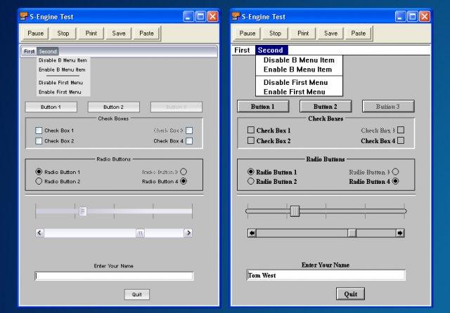 | There's apparently a very cool GUI toolkit for Turing at https://sourceforge.net/projects/s-engine . I've never tried it, but here's a screenshot comparing S-engine (on the left) to regular Turing GUI (on the right) right here |